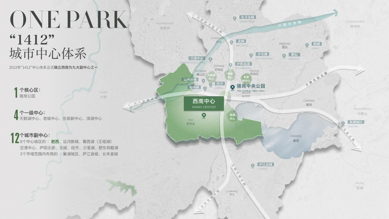 名邦·公園一品所在的西南板塊是合肥“1412”城市中心體系確定的9大城市副中心之一,坐享區(qū)域發(fā)展紅利。項目周邊形成了立體交通網(wǎng)絡(luò),肥西高鐵站距離項目僅約3000米,地鐵3號線芮祠站即位于項目樓下;通過金寨路高架、翡翠路、集賢路、方興大道等主干道,亦可快速通達(dá)全城。